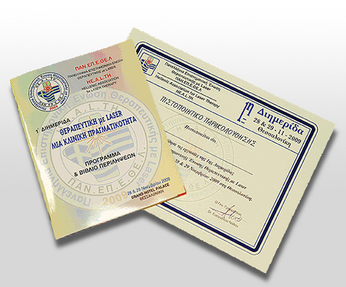 Σχεδιασμός - εκτύπωση εντύπων, πιστοποιητικά συμμετοχής, αφίσες και ό,τι έντυπο χρειαστεί για τη διοργάνωση του συνεδρίου ή της έκθεσης.